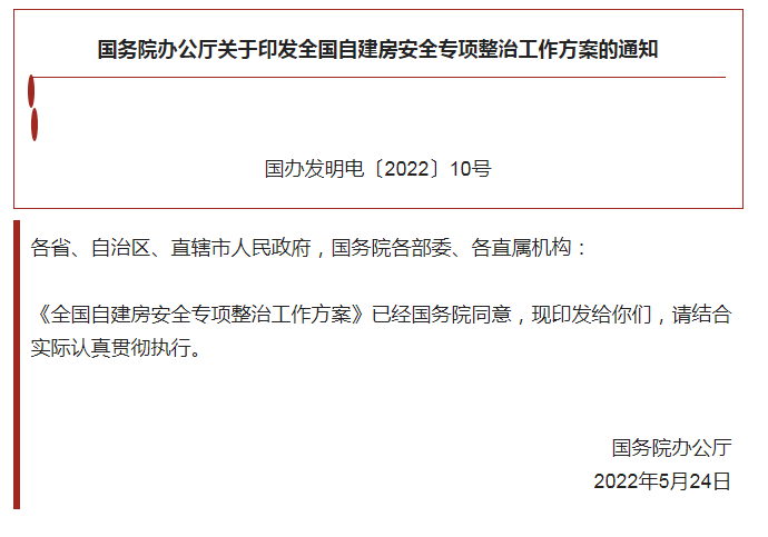 国务院办公厅关于印发全国自建房安全专项整治工作方案的通知