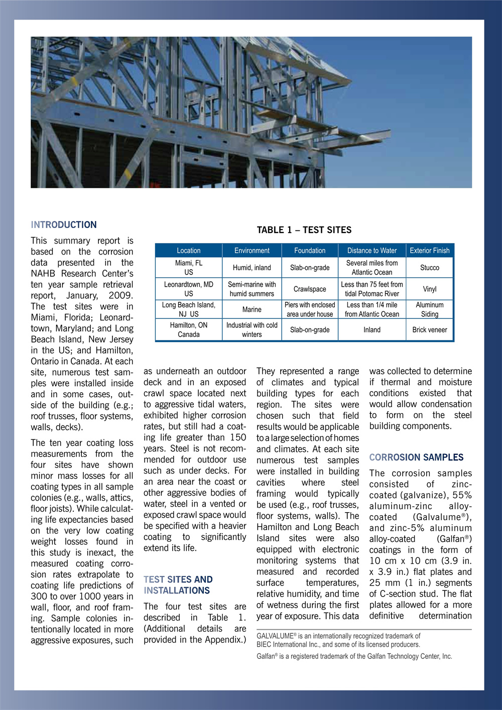 | NAHB研究中心关于轻钢住宅龙骨耐久性实验的数据简报 |