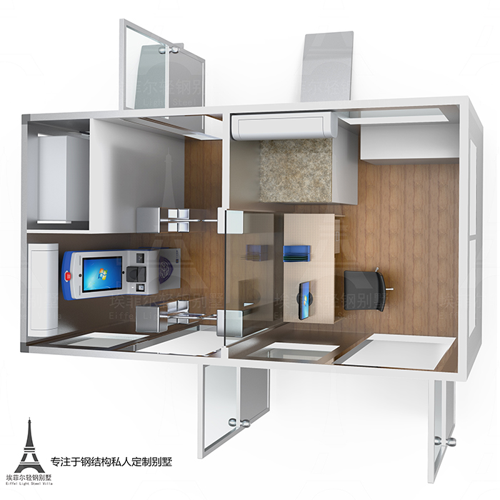 2. 安装 304 不锈钢内墙板,构建设备与空调外机储放空间,填充岩棉保温层。